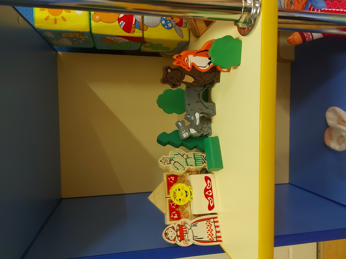 : Дидактические и развивающие игры. Дидактическое пособие "Моя семья" фотоальбомы с фотографиями детей и их семьями , макет русской избы, наглядные картинки. Дидактическая игра «Семья»,дидактическая игра на липучках «Наряди куклу», картотека «Русские народные потешки»,куклы в национальных костюмах. Выставки, знакомящие с истоками русской народной культуры, которые содержат разнообразные предметы старины, национальные костюмы людей, традиционные игрушки (деревянные и тряпичные куклы, экспонаты декоративно-прикладного искусства (расписные матрешки, посуда, дымковские игрушки. Книги, печатные пособия. 1. «Москва» 2. Русские народные сказки («Колобок», «Репка», «Теремок», «Курочка Ряба».«Три медведя») 3. Потешки 5.Русские пословицы и поговорки 6. »Кирюшка помогает маме»(Ю. Черепанов) 7.Картотека тематических пальчиковых игр; 8. Нравственно-патриотическое воспитание детей дошкольного возраста (Планирование работы и конспекты занятий. 9.Демонстрационные картинки с текстом на обороте по теме : « Семья» Игрушки 1. Куклы 2. Матрешки 5. Медведи 6. Ложки 8. Волчки Игры: 1.Дидактическая игра «У нас порядок». 2.Кукольный театр по сюжетам русских народных сказок. 3.Пальчиковый театр. -Иллюстрированный материал по тематике центра: Альбом с фотографиями «Моя семья» Тематические папки с иллюстрациями: - сказочных героев - профессий - людей и животных - наших чувств и эмоций - семьи 4. Художественная литература, произведения фольклора – песни, прибаутки, потешки и сказки.